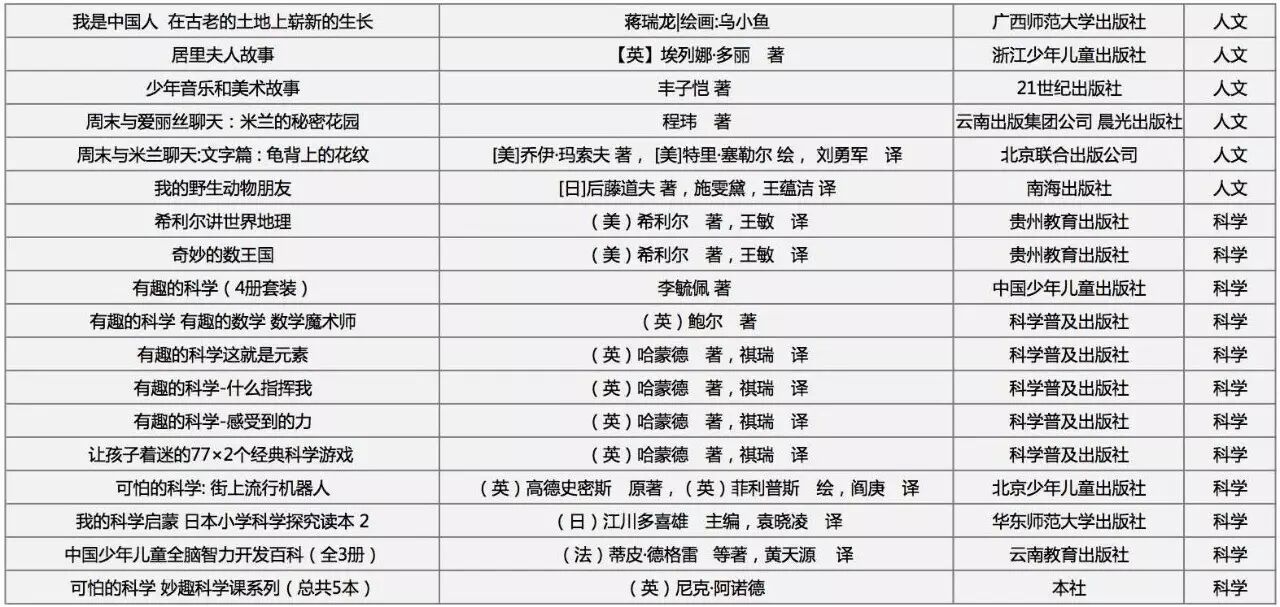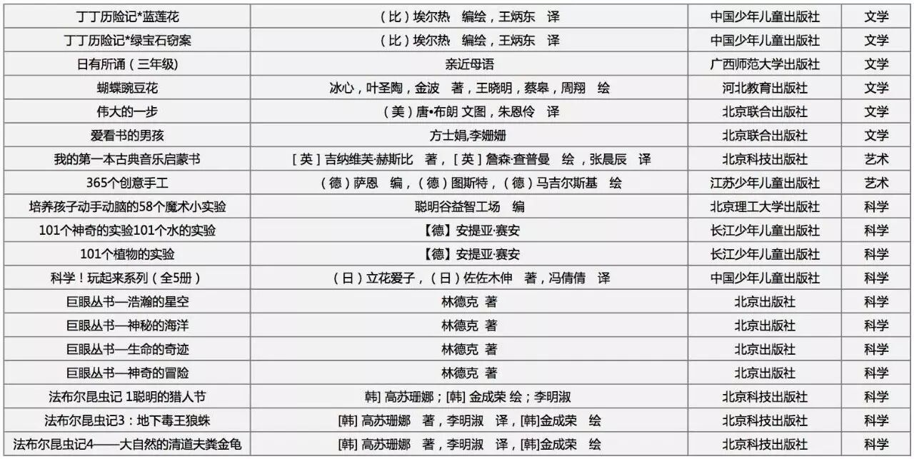 推荐的图书要涵盖儿童阅读的各个方面,科学、人文、文学、艺术的主要类别和关于儿童成长的主要主题,都有专门考虑,基本做到了不遗漏重要内容类别和主题类型。