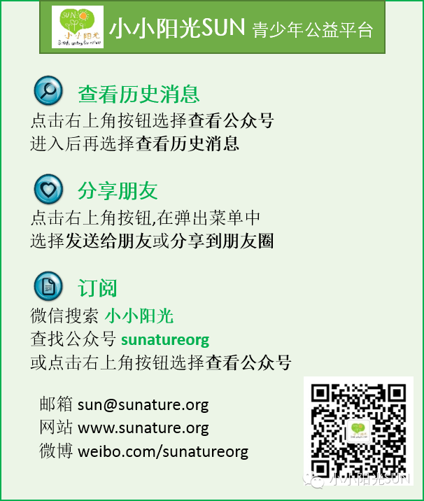 小小阳光S.U.N.福州的合作组织“乐享自然”的首席发展顾问——台湾行政院环保署环境教育基金管理会委员、台湾荒野保护协会荣誉理事长及亲子团创团总团长蓝鹊说:“去制造机会让孩子们证明自己有能力做些让世界变得更美好的事,即使是微不足道的事。孩子们在守护自然的行动中培养自信和积累经验,等到有朝一日,他们长大成为更有影响力的人,便可运用学习来的觉知能力、生态知识、环境伦理与环境关怀行动经验,去预防和解决从地区性到全球各层次的环境议题。”这就是我们小小阳光S.U.N.要做的事。