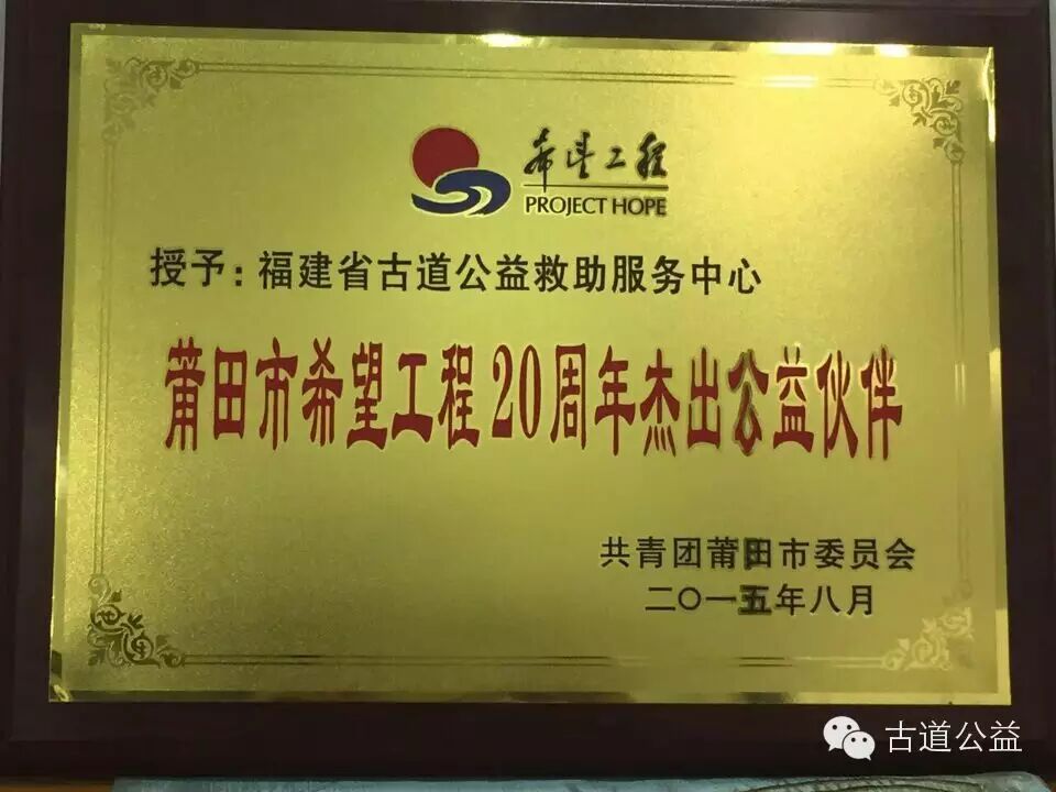 20150824古道公益义工黑牛和暖心参加莆田市青少年基金大会暨希望工程20周年纪念大会,古道公益被授予“莆田市希望工程20周年杰出公益伙伴”20150824下午福建省旅游局张鹏主任、陈敬炜等、用友企业朋友来访