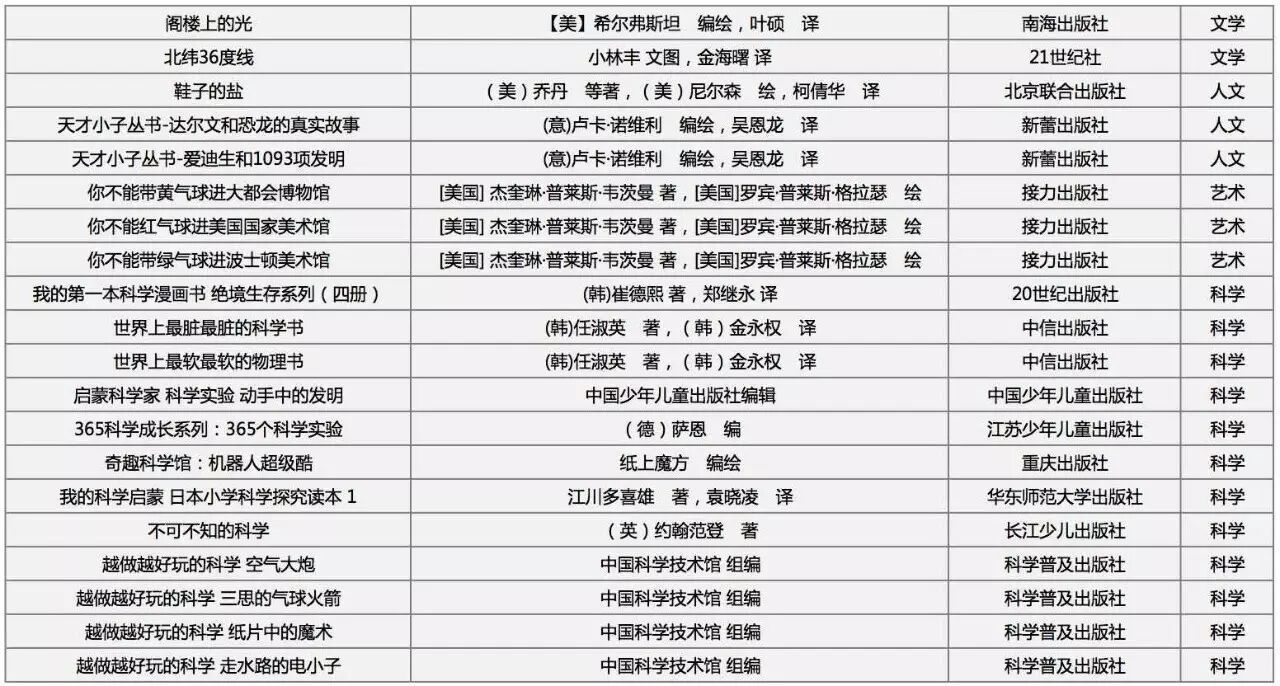 推荐的图书要涵盖儿童阅读的各个方面,科学、人文、文学、艺术的主要类别和关于儿童成长的主要主题,都有专门考虑,基本做到了不遗漏重要内容类别和主题类型。