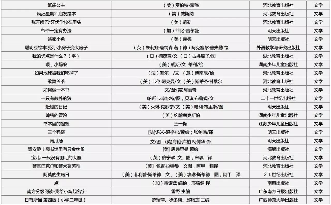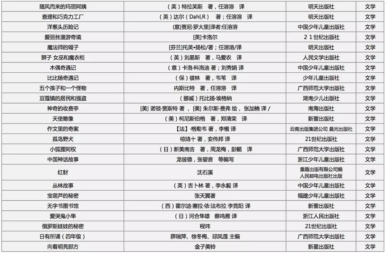 乡村小学分年级阅读推荐书目